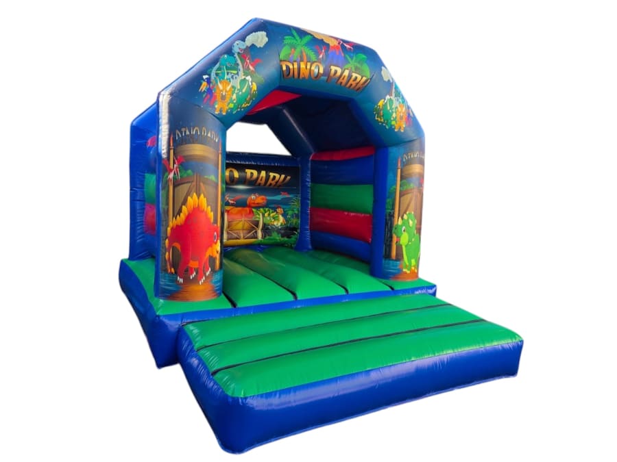 Step into a prehistoric world and fuel your child's imagination with our 11x14 FT DINO PARK BOUNCY CASTLE. Perfect for safari-themed parties or just a day of fun, this vibrant and exciting inflatable is sure to captivate both kids and adults alike. Featuring an array of colorful dinosaurs depicted in stunning artwork, your little ones can hop, skip, and jump in a world where dinosaurs roam once again! 🦕🌿