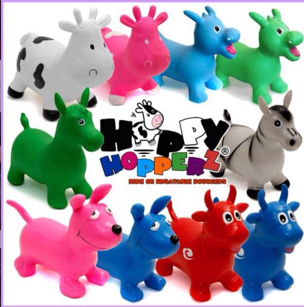 4 Assorted Happy Hoppers Strengthens core muscles, increases balance control & develops coordination skills. Not since the past crazes of the Rubik's Cube, My Little Pony, Cabbage Patch Kids & Space Hoppers has the children's toy market seen a product that has the potential to capture the imagination of a young child as much as the recently launched 'HappyHopperz®' range. Described by a leading children's website as "seriously cool" the HappyHopperz® are a collection of bright, inflatable animals that not only rival the space hoppers of the 1970's but take the bouncing experience to a whole new level. With ears & horns for children to grip on to and feet to steady the bounce, these wonderful animals come in a variety of different styles and colours that give 'Old Macdonald' a run for his money! Children gain all the benefits of physical exercise and healthy lifestyle whilst strengthening muscles , building confidence, getting social interaction and encouraging imagination play all from one great product. Happy Hopperz do not require batteries - do not have any annoying noises or flashing lights - a hark back to when toys were proper toys. This product is only available as a added extra with any