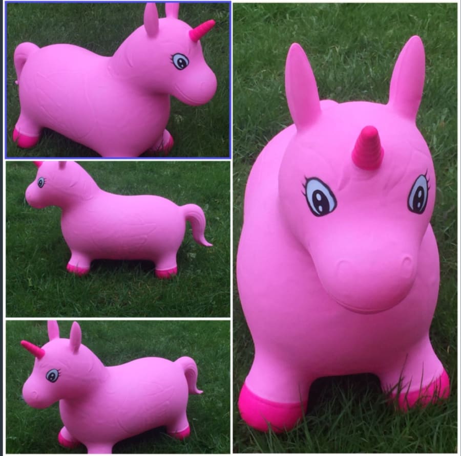 Four new pink Unicorn Happy Hoppers, ideal for 2 - 4 year olds, for indoor / grass use. Ideal as party extra to go along with one of our unicorn range castles if you are doing a unicorn themed party. These are not available to be booked on there own, they are only available as an added extra with one of our inflatables. To book select your castle then it will give you the option to book the happy hoppers as an extra item/s.