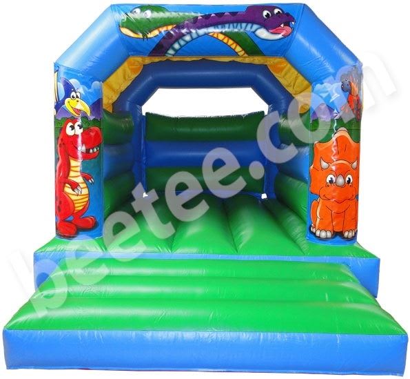 🏰 Our Low roof Dinosaur Castle with a blue base, covering Wakefield, Dewsbury and Castleford area's. The benefits from having a roof height of only 9 foot 4 inches, allowing it to go into most low roofed venues.