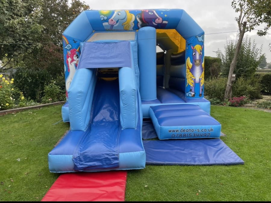 Our new unicorn bounce and slide low roofed castle gives you the benefit of having a bouncy castle and a slide all in one, it is ideal for boys and girls alike. It is ideal for up to 8 children up to the age of 12. With a height of 9ft 3 inches this castle is also suitable to go indoors.Space required 16 ft x 24 ft x 10 ft (W x L x H). Safety mats supplied, suitable for indoor and outdoor use, (sandbag weights supplied for inside use ) Please click the check availability button to see if this castle is available on your chosen date if it is it will allow you to proceed to the next step for you to book the castle on-line,a confirmation e-mail with an booking reference number will be sent to you instantly on completion.